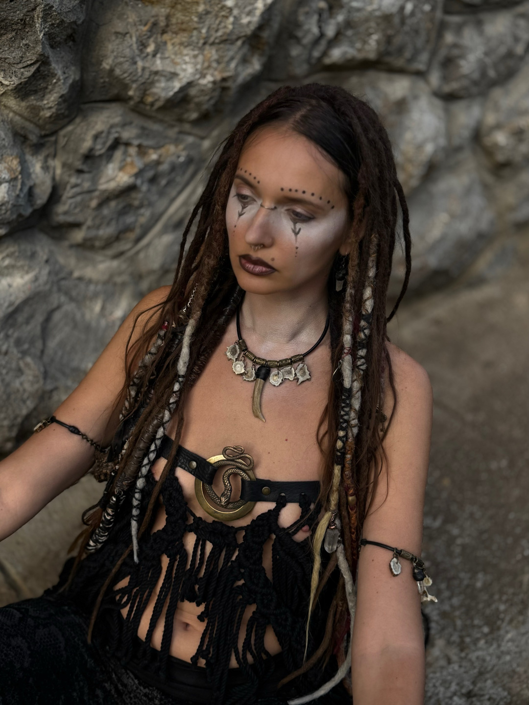 Seer Tribal Necklace with Labradorite from the Shamaness Collection. Handcrafted elegance with a radiant labradorite centerpiece, symbolizing intuition and spiritual connection.